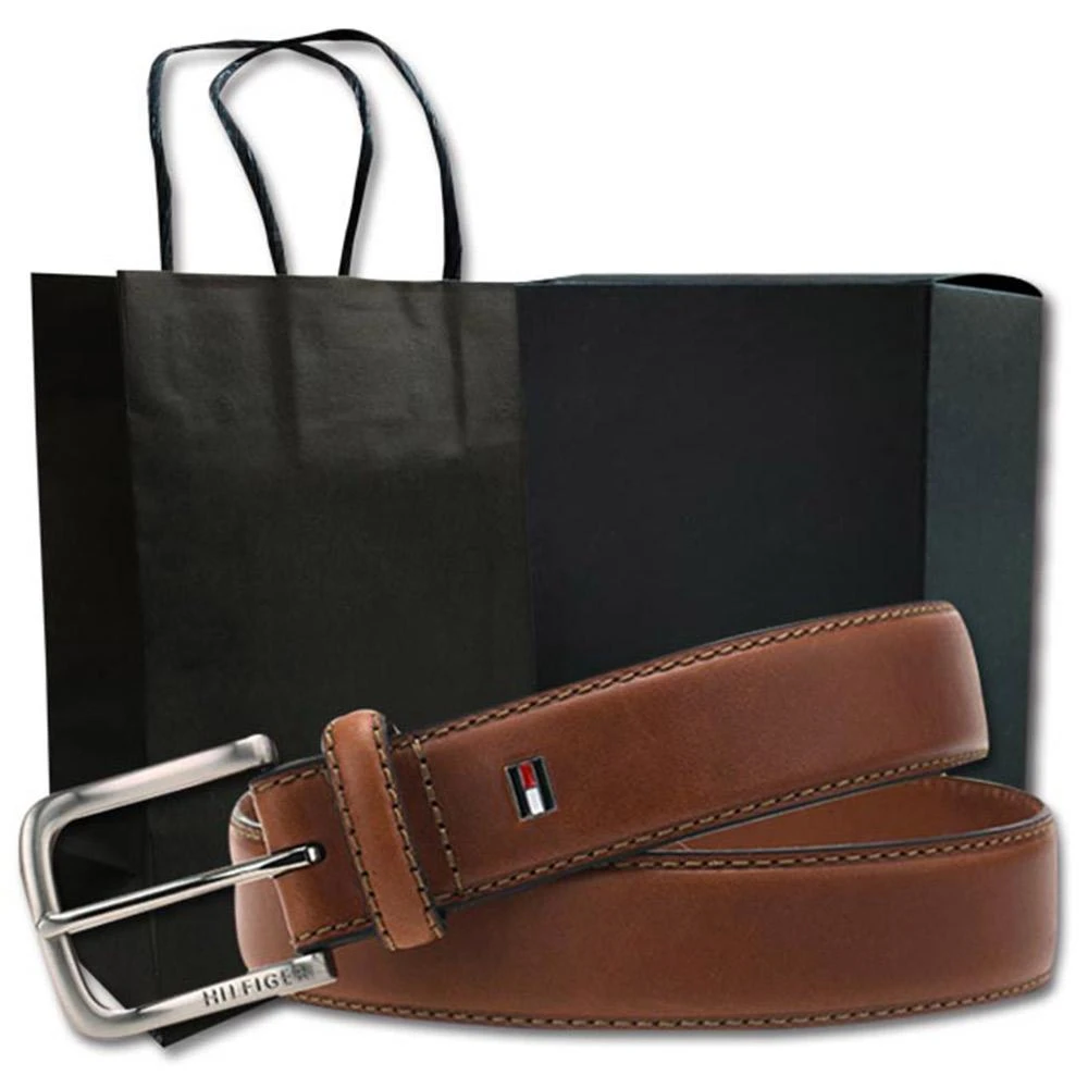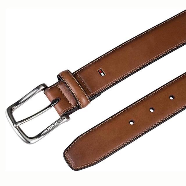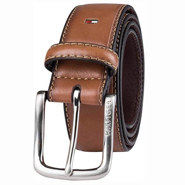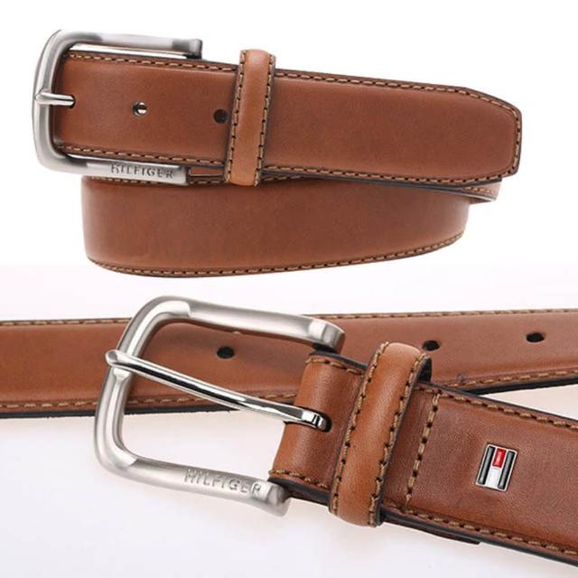 TOMMY HILFIGER男皮帶 皮帶 雙LOGO設計 銀扣頭/咖色(男皮帶皮革皮帶腰帶)