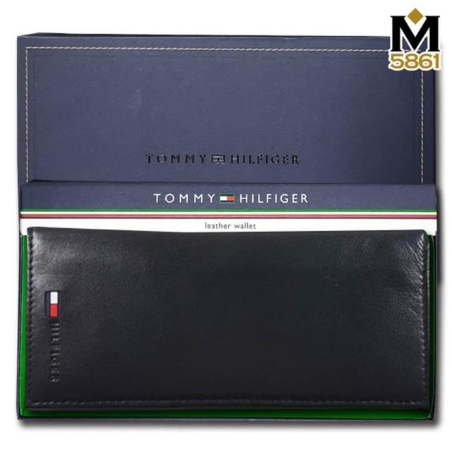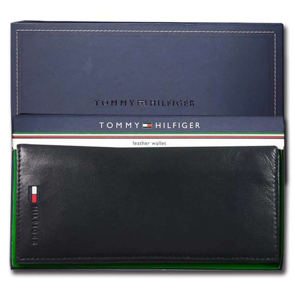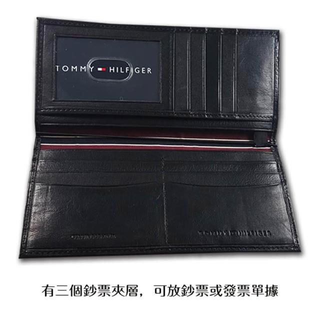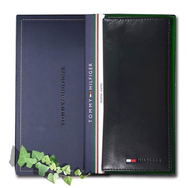 TOMMY HILFIGER男皮夾 長夾 牛皮夾 多卡夾 三鈔層 品牌盒裝/黑色(男夾長夾男皮夾零錢袋)