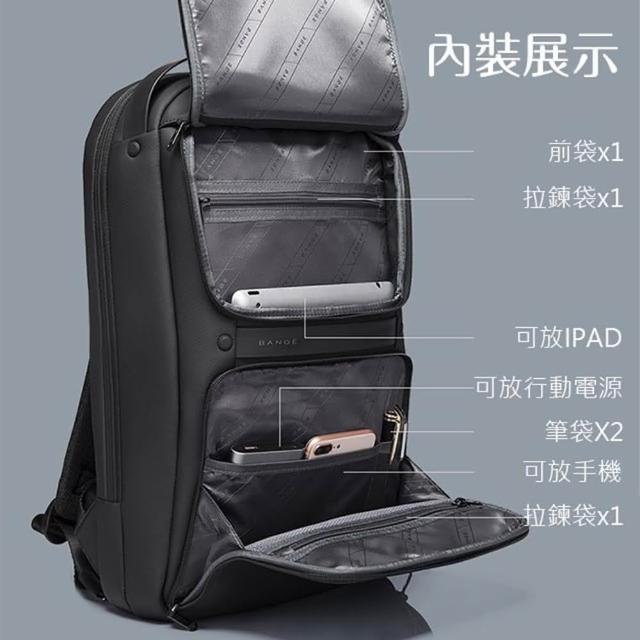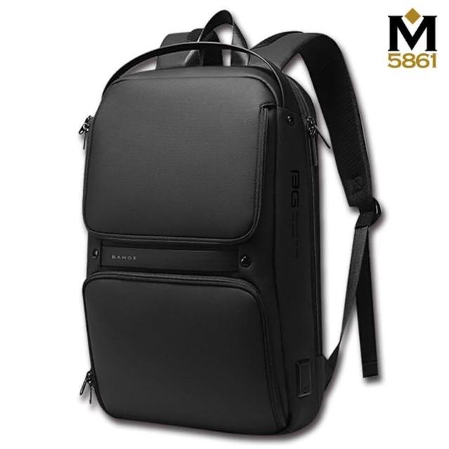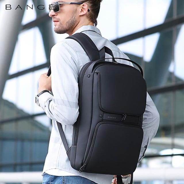 BANGE 男包 後背包 電腦包 雙前袋 防水材質 後背手提兩用包/黑色(男包後背包筆電包)