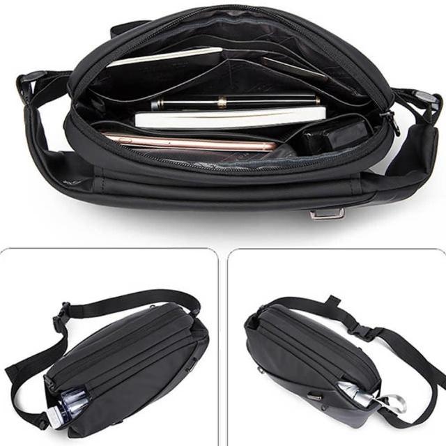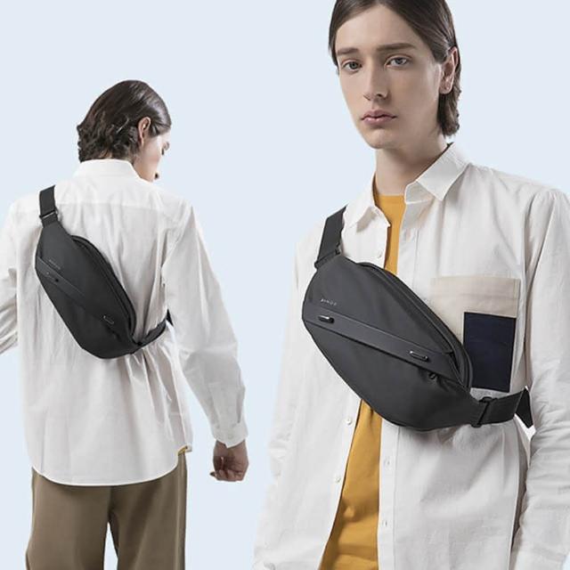 BANGE 男包 胸包 拼接機能掛勾設計 男胸包 斜跨包 後背包 /黑+黑(男包胸包肩背包)