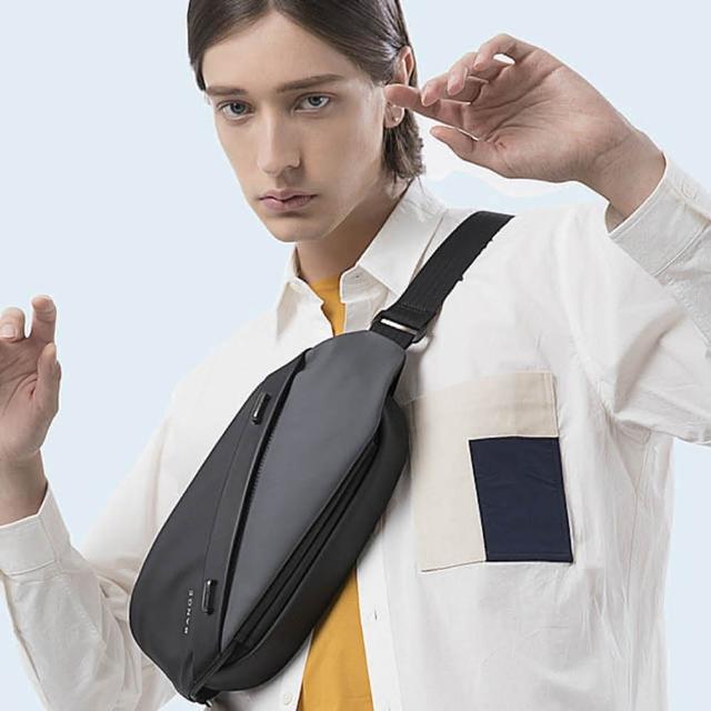 BANGE 男包 胸包 拼接機能掛勾設計 男胸包 斜跨包 後背包 /黑+灰(男包胸包肩背包)