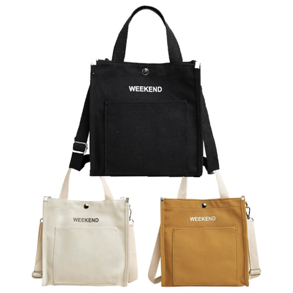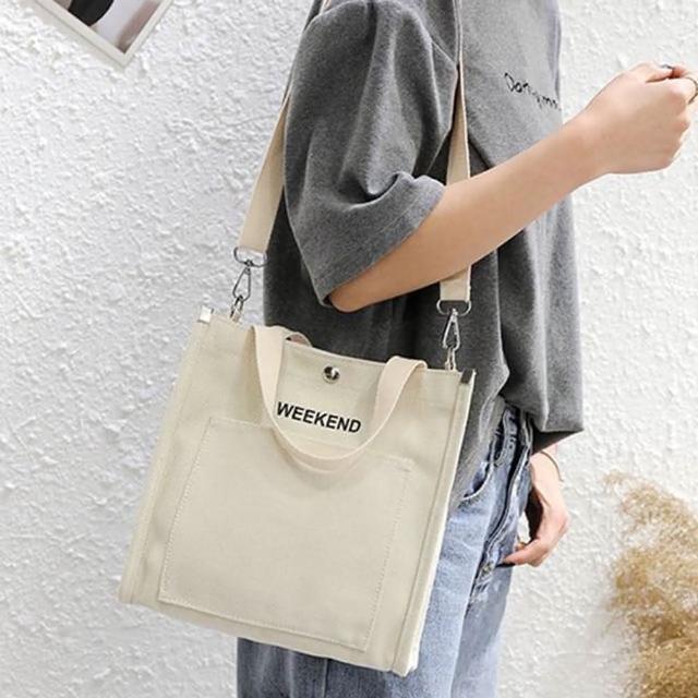帆布包 純棉 帆布袋 Weekend 側肩背 斜背/暗扣/多色可選(帆布袋肩背側背斜背)
