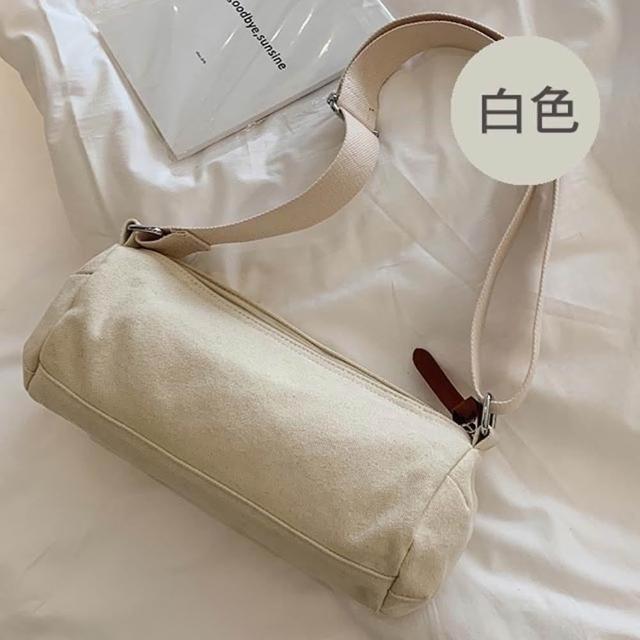 帆布包 純棉 帆布袋 波士頓圓筒包 側肩背 斜背/拉鍊/多色可選(帆布袋側肩背袋)