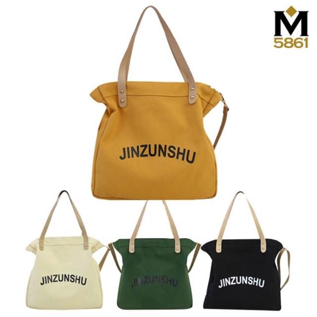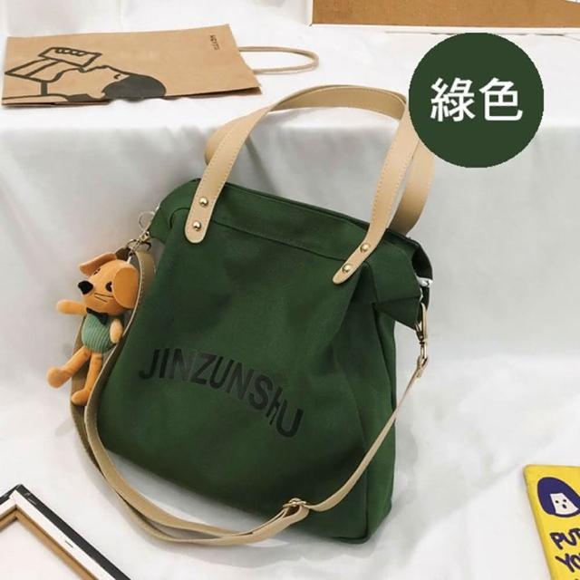 帆布包 純棉 帆布袋 JINZUNSHU 側肩背 斜背/拉鍊/多色可選(不含布偶)(帆布袋側肩背袋)