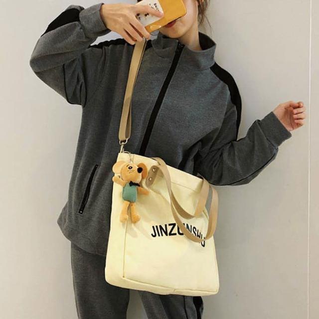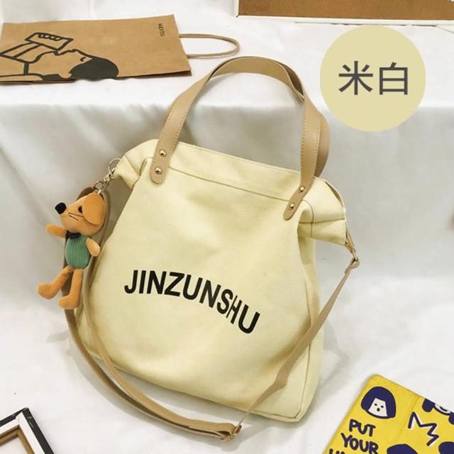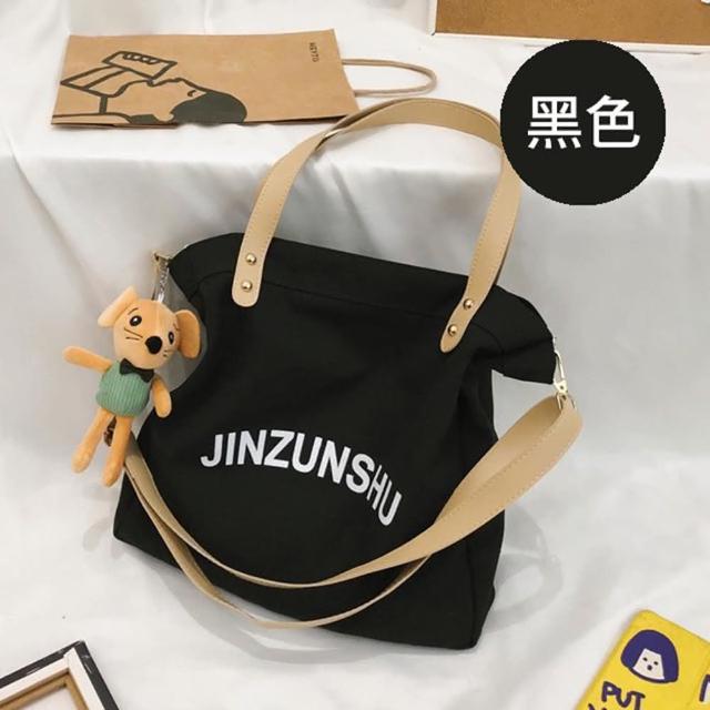 帆布包 純棉 帆布袋 JINZUNSHU 側肩背 斜背/拉鍊/多色可選(不含布偶)(帆布袋側肩背袋)