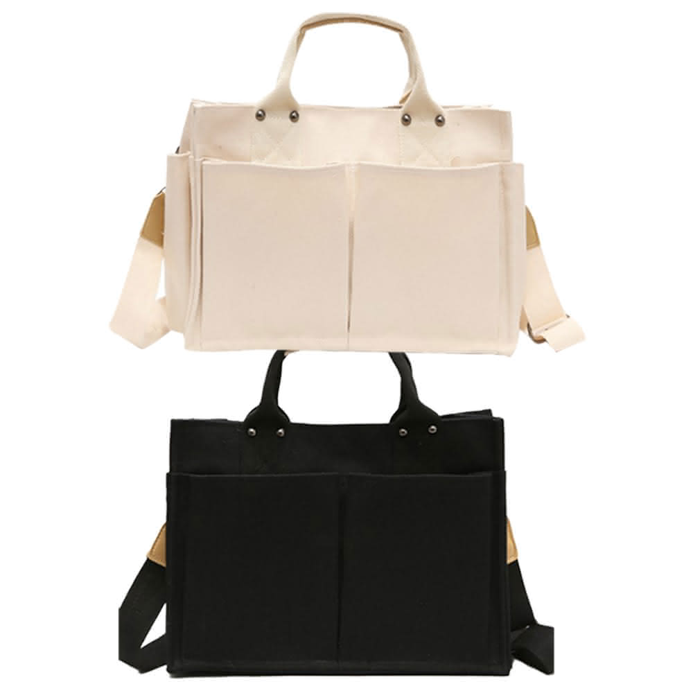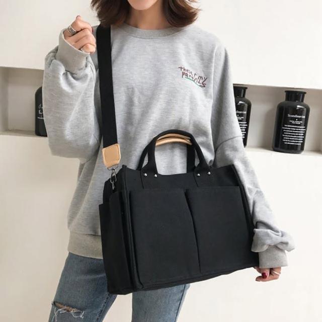 帆布包 純棉 帆布袋 皮革提把方包 側肩背 斜背/暗扣/多色可選(帆布袋肩背側背斜背)