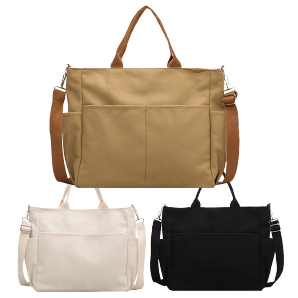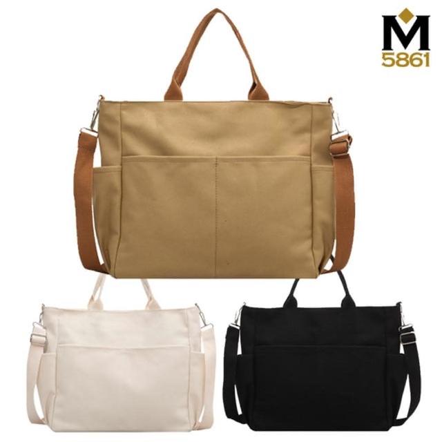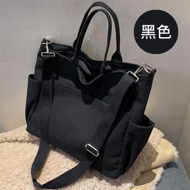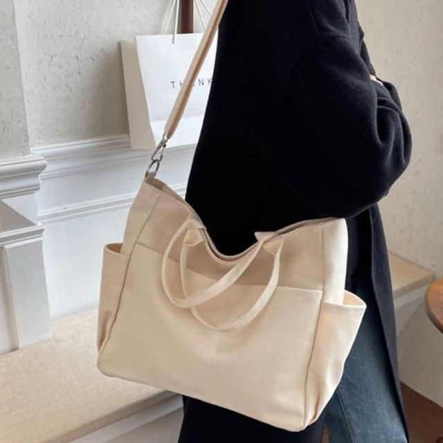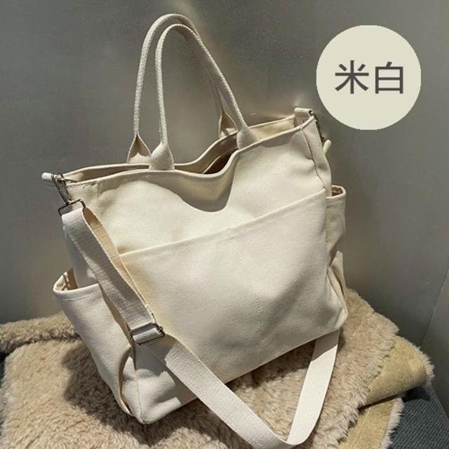 帆布包 純棉 帆布袋 素面多口袋 側肩背 斜背/拉鍊/多色可選(帆布袋肩背側背斜背)