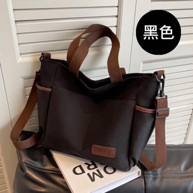 帆布包 牛津布 帆布袋 撞色多口袋 側肩背 斜背/拉鍊/多色可選(帆布袋肩背側背斜背)