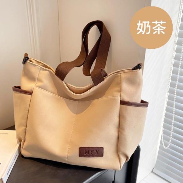 帆布包 牛津布 帆布袋 撞色多口袋 側肩背 斜背/拉鍊/多色可選(帆布袋肩背側背斜背)