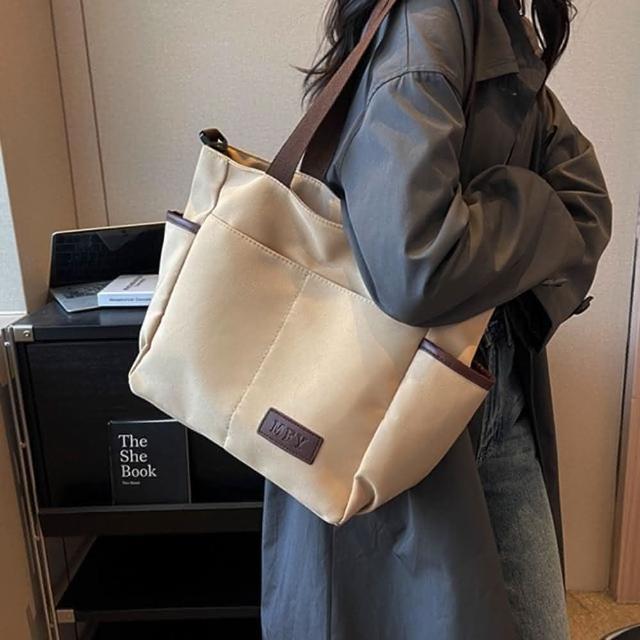 帆布包 牛津布 帆布袋 撞色多口袋 側肩背 斜背/拉鍊/多色可選(帆布袋肩背側背斜背)