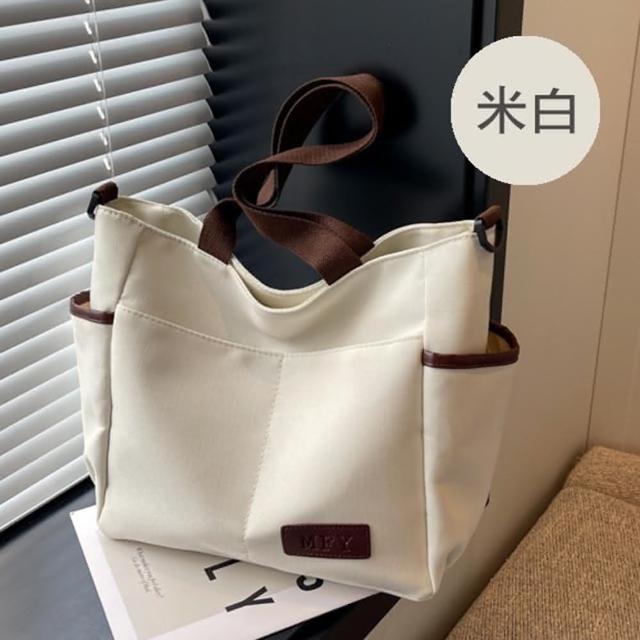 帆布包 牛津布 帆布袋 撞色多口袋 側肩背 斜背/拉鍊/多色可選(帆布袋肩背側背斜背)