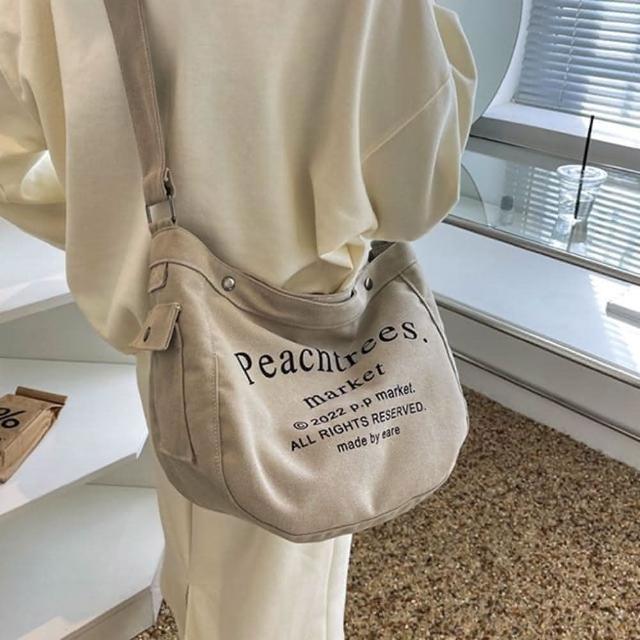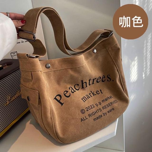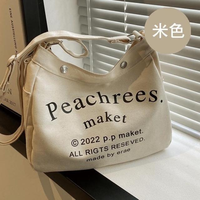 帆布包 純棉 帆布袋 Peach Trees 側肩背 斜背/束口/多色可選(帆布袋肩背側背斜背)