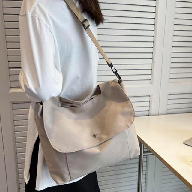 帆布包 牛津布 帆布袋 通勤翻蓋包 肩背 斜背/暗扣+拉鍊/多色可選(帆布袋 側肩背包)
