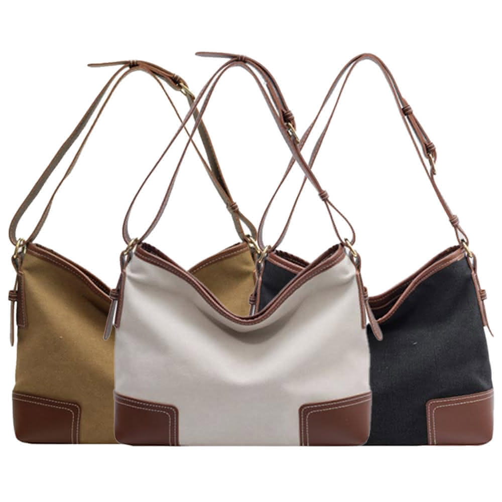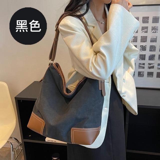帆布包 純棉 帆布袋 皮革四角大包 側背 肩背/拉鍊/多色可選(帆布袋側肩背包)