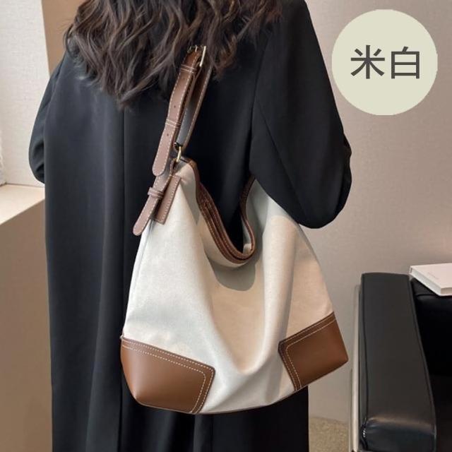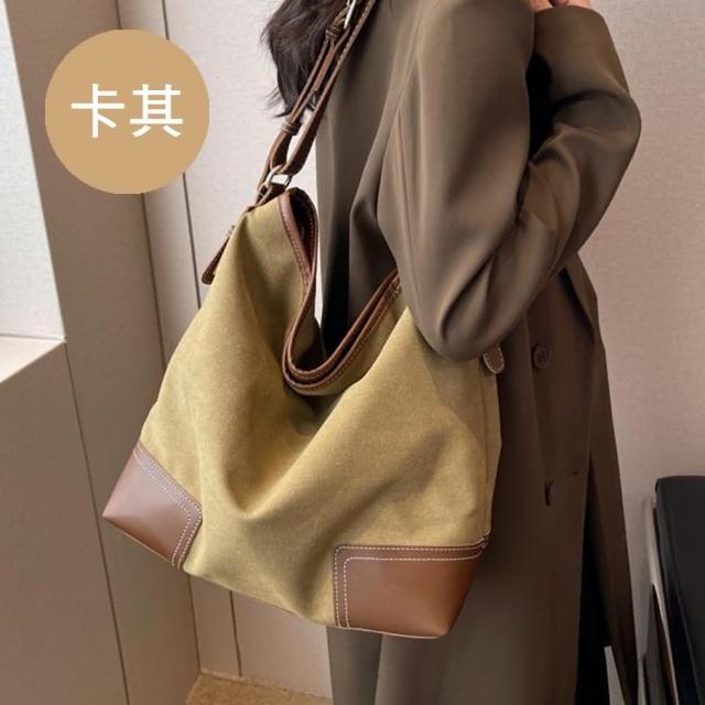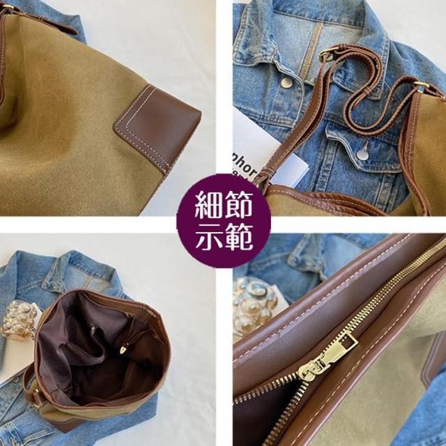 帆布包 純棉 帆布袋 皮革四角大包 側背 肩背/拉鍊/多色可選(帆布袋側肩背包)