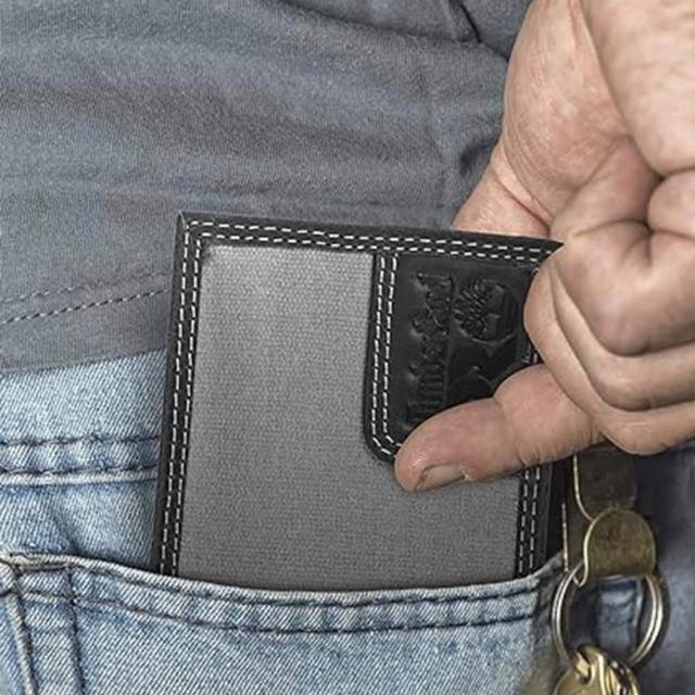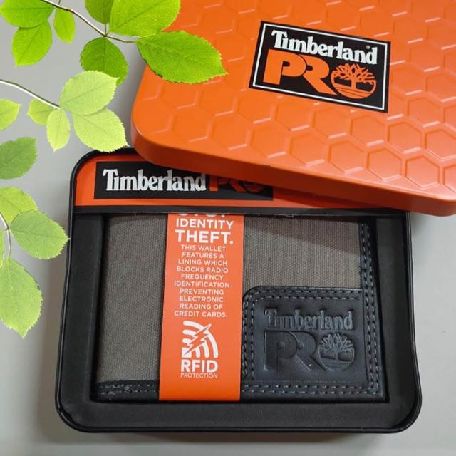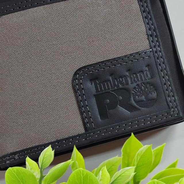 Timberland男皮夾 短夾 簡式悠遊卡夾 帆布PRO款 牛皮夾 品牌盒裝/灰色(男夾短夾男皮夾)