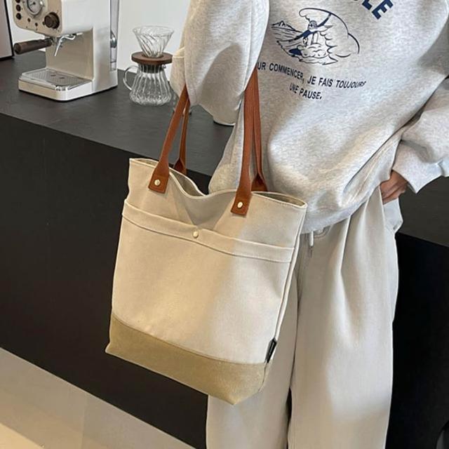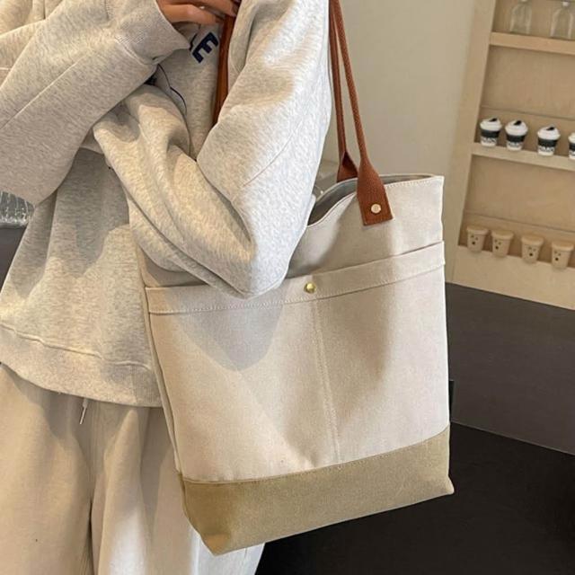 帆布包 純棉 帆布袋 雙色肩背 肩背/拉鍊/多色可選(帆布袋肩背側背斜背)