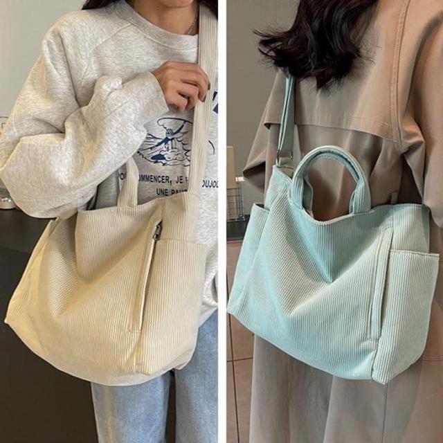 帆布包 燈心絨布 橫式燈心絨 斜背包 側肩背包/斜背+側肩背/多色可選(帆布袋側肩背包)