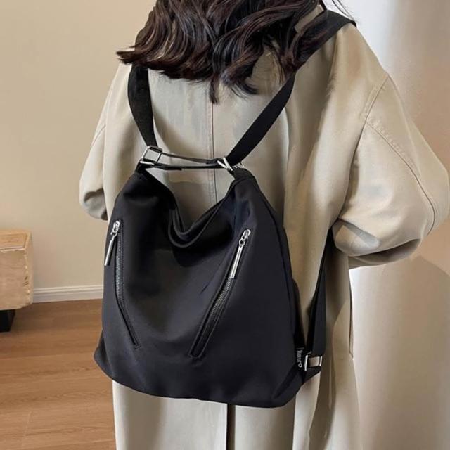 帆布包 牛津布 帆布袋 雙斜袋多用包 側肩背 後背 斜背/黑色(帆布袋側背後背包)