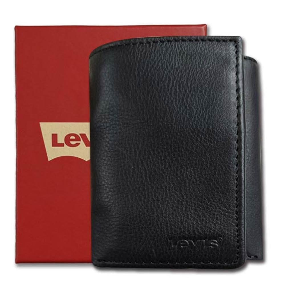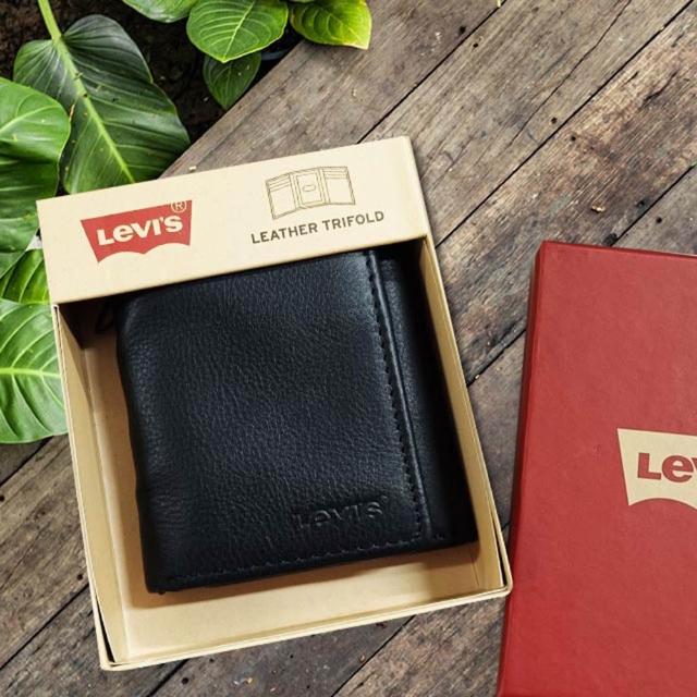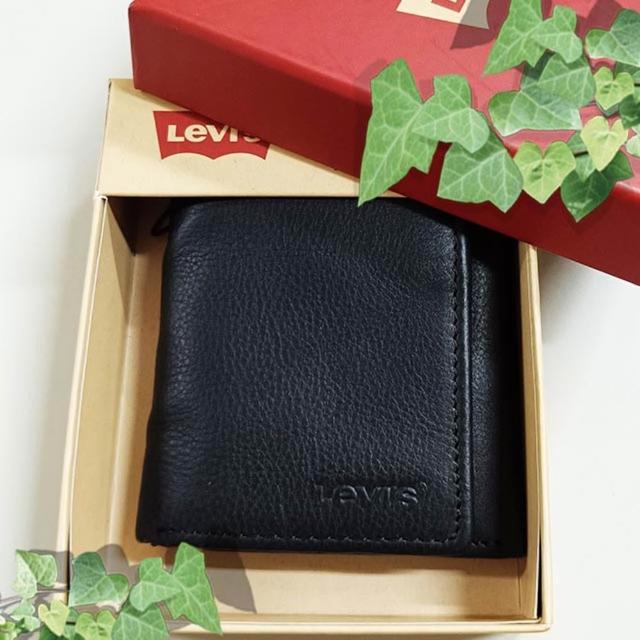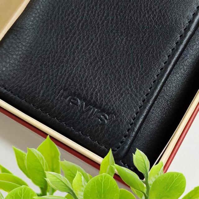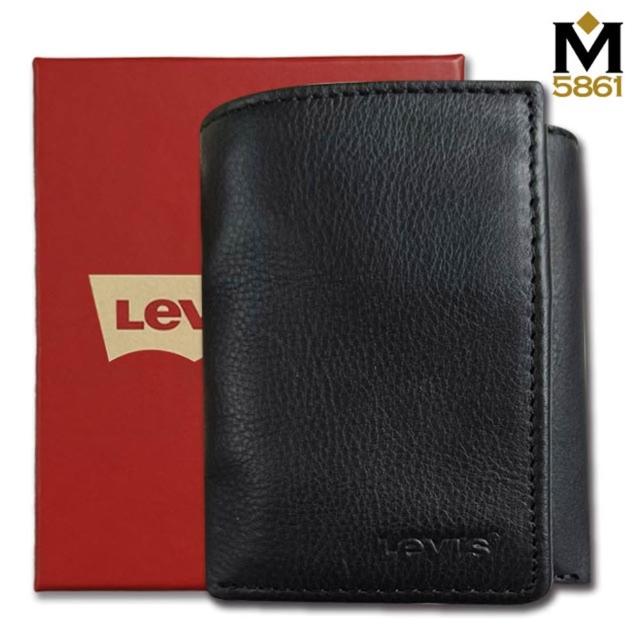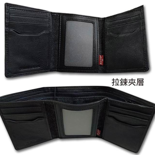 LEVIS男皮夾 三折 牛皮夾 拉鍊零錢袋 經典盒裝/黑色(男夾短夾男皮夾零錢袋)
