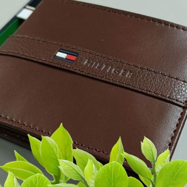 TOMMY HILFIGER男皮夾 短夾 牛皮夾 中標設計 多卡夾 獨立卡夾 大鈔夾 品牌盒裝/棕色(男夾短夾男皮夾)