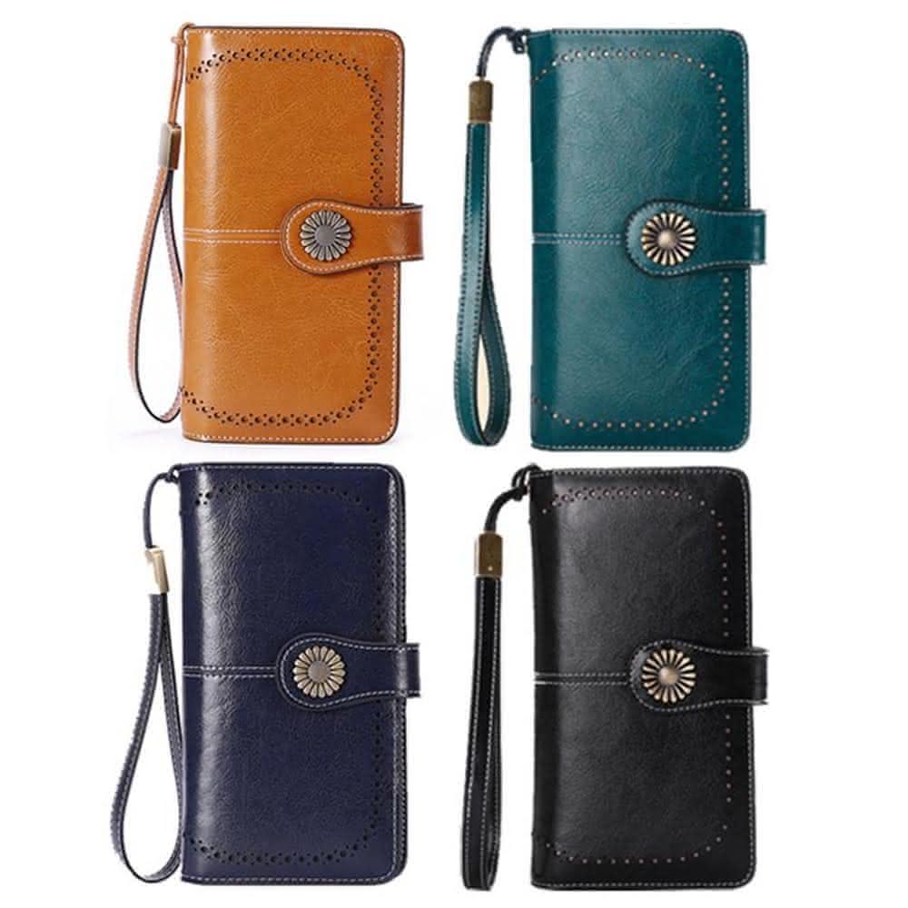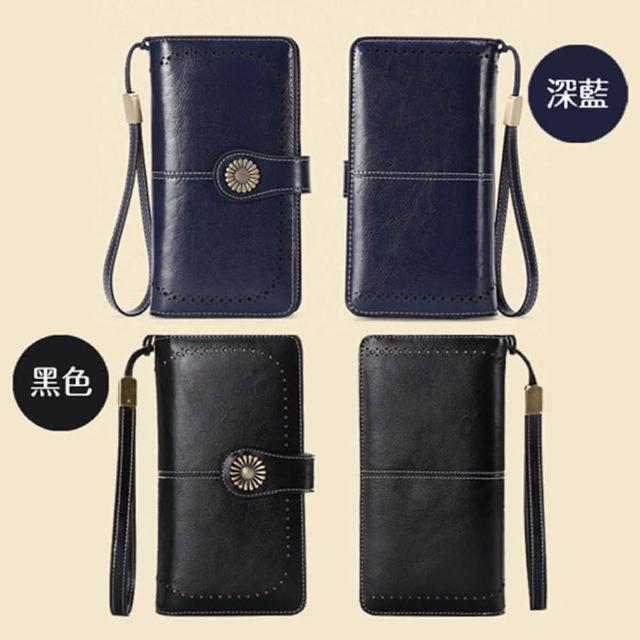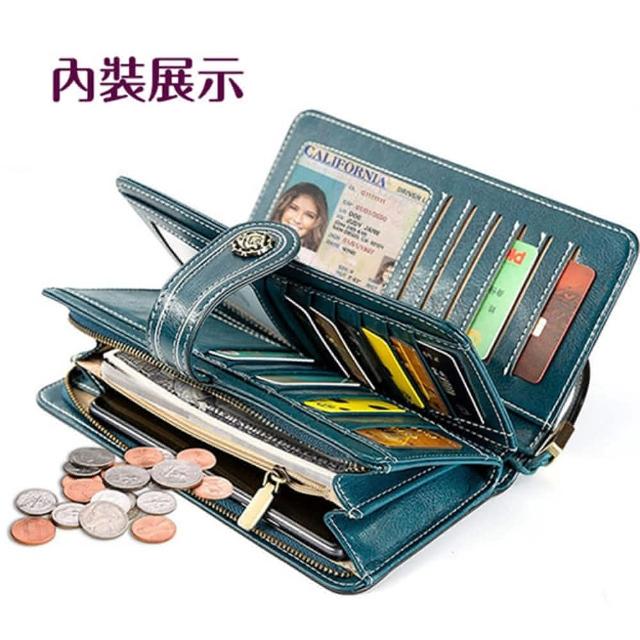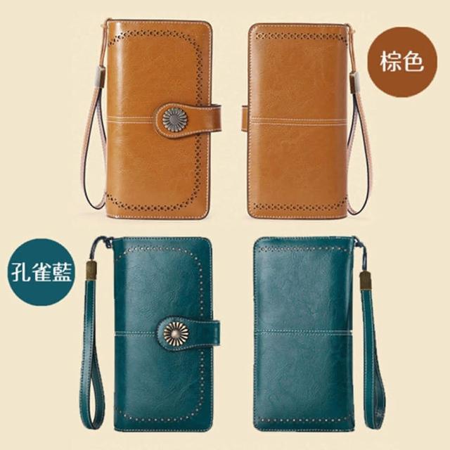 女夾 女長夾 皮夾 鏤空花邊牛皮夾 多卡夾+拉鍊零錢袋 手拿包 配腕帶/多色可選(女夾長夾皮夾)