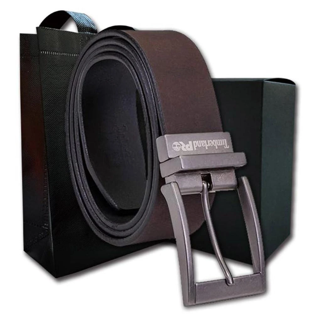 Timberland男皮帶 皮帶 雙面雙色 字標PRO LOGO 銀扣頭/咖+黑 (男皮帶皮革皮帶腰帶)