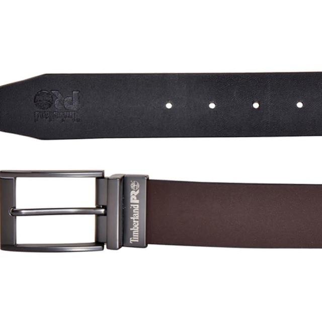 Timberland男皮帶 皮帶 雙面雙色 字標PRO LOGO 銀扣頭/咖+黑 (男皮帶皮革皮帶腰帶)