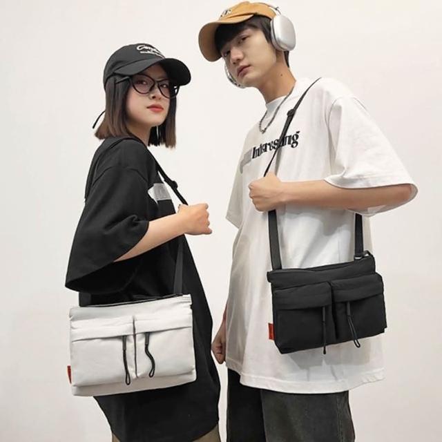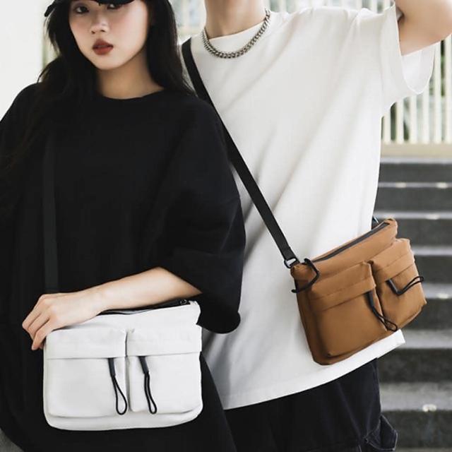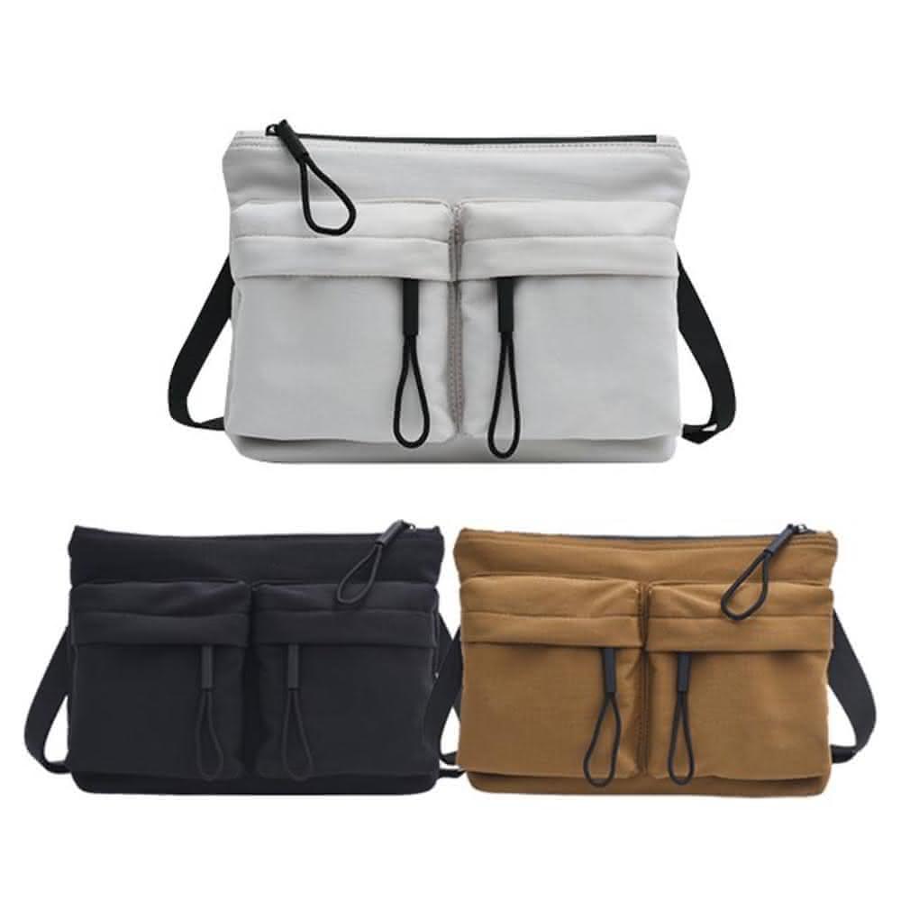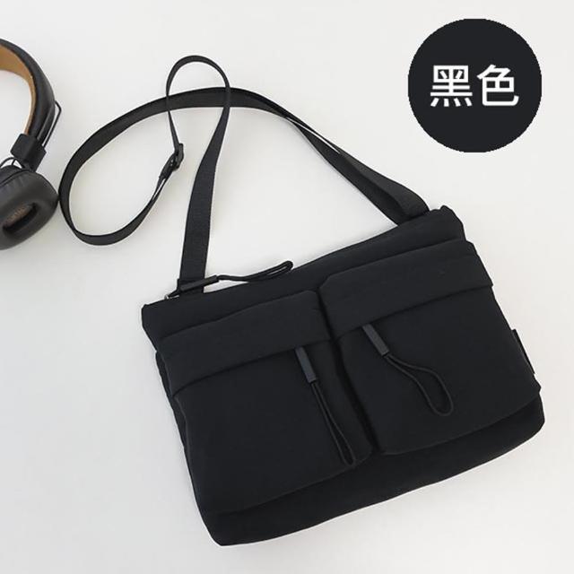帆布包 牛津布 帆布袋 牛津輕薄雙口袋 側肩背 斜背/拉鍊/多色可選(帆布袋肩背側背斜背)