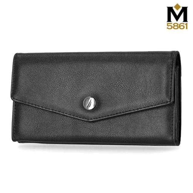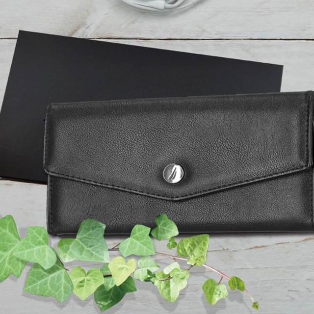 NAUTICA女皮夾 女長夾 牛皮夾 拉鍊零錢層 多卡夾 手拿包 上蓋扣式開合/黑色(女夾長夾女長夾)