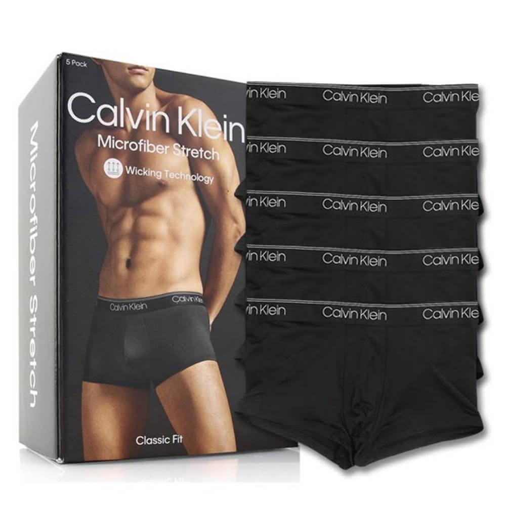 Calvin Klein男內褲 四角男內褲 彈纖 中低腰 超值5件盒組/黑色原廠盒裝(男內褲四角褲彈纖)