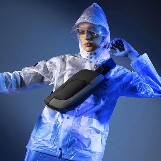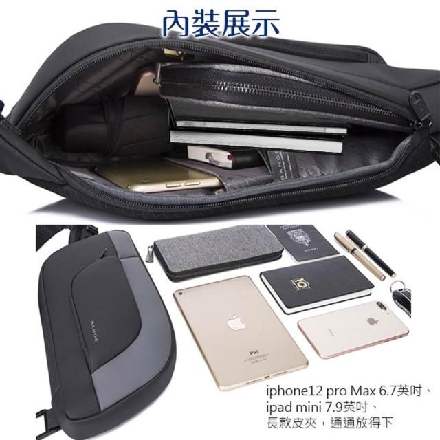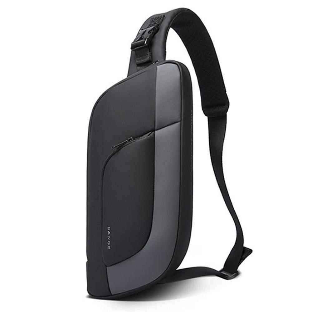 BANGE 男包 胸包 輕薄新月形設計 男胸包 斜跨包 後背包 /黑+灰(男包胸包肩背包)