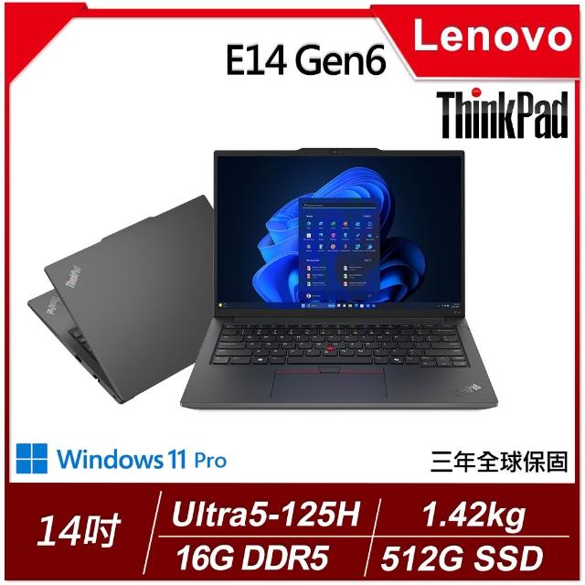 ThinkPad 聯想E14 Gen6 14吋三年保W11P商務AI筆電(Ultra5-125H/16G/512G/W11P/三年保)特仕