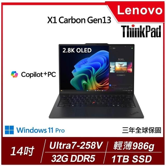 ThinkPad 聯想X1 Carbon Gen13輕薄商務AI筆電(Ultra7-258V/32G/1TB/2.8K/W11P/EVO)特仕