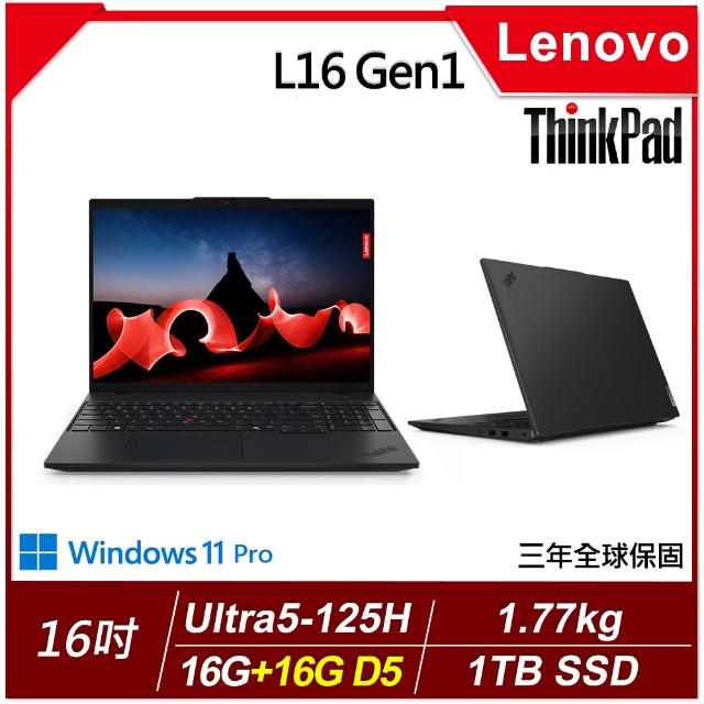ThinkPad 聯想L16 Gen1 三年保W11P商務AI筆電(Ultra5-125H/16G+16G/1TB/16吋)特仕