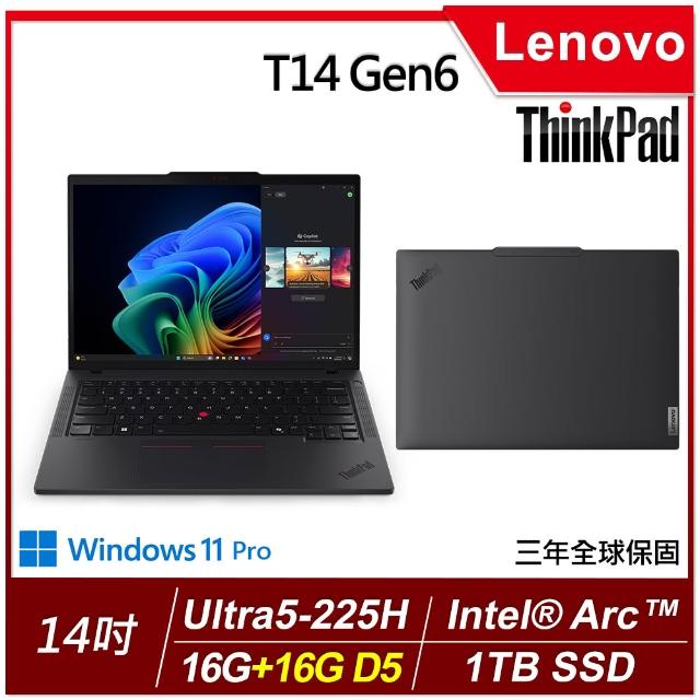 ThinkPad 聯想T14 Gen6 14吋輕薄商務AI筆電(Ultra5-225H/16G+16G/1TB/W11P/三年保)特仕
