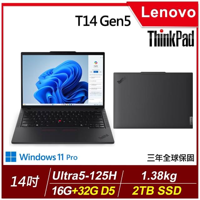 ThinkPad 聯想T14 Gen5 14吋輕薄(Ultra5-125H/16G+32G/2TB/W11P/三年保)特仕商務AI筆電