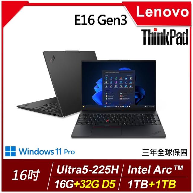 ThinkPad 聯想E16 Gen3 16吋三年保W11P商務AI筆電(Ultra5-225H/16G+32G/1TB+1TB SSD)特仕