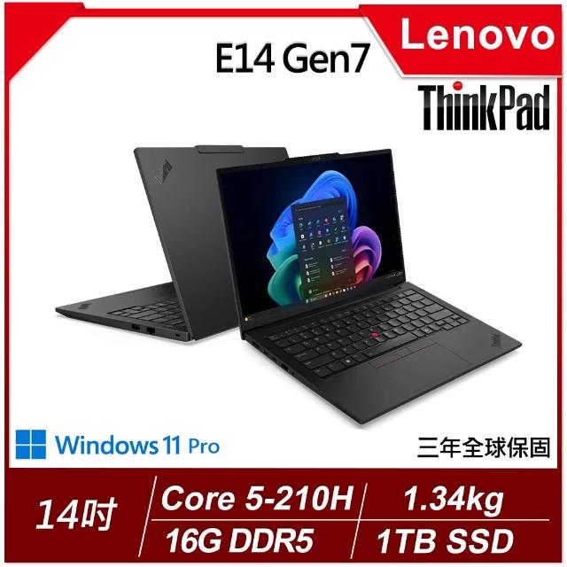 ThinkPad 聯想E14 Gen7 14吋1.34kg三年保W11P專業版(Core 5-210H/16G/1TB/IPS)商務筆電