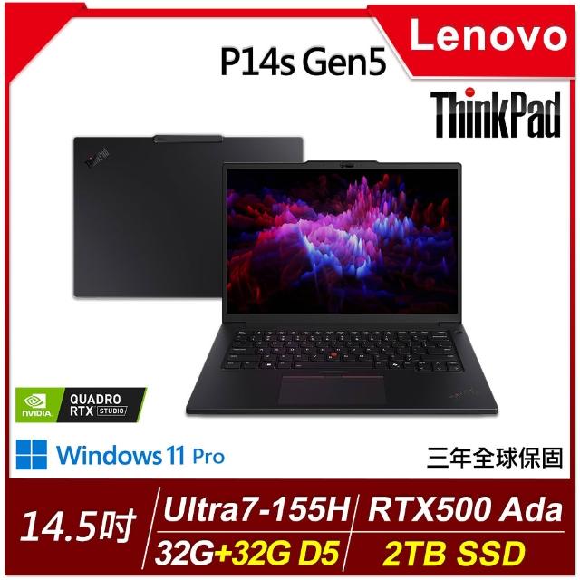 ThinkPad 聯想P14s Gen5 14.5吋獨顯(Ultra7-155H/64G/2TB/RTX500 Ada/W11P)特仕AI筆電
