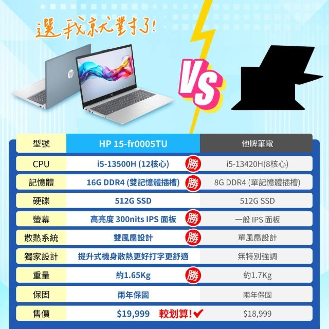 HP 惠普15.6吋輕薄效能文書(i5-13500H/8G+8G/512G/FHD/W11/藍/15-fr0005TU)特仕筆電