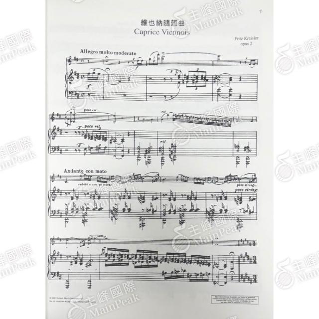 全新 《 克萊斯勒 珠玉小品集 》中文版 小提琴與鋼琴 樂譜 提琴譜 鋼琴譜 比賽指定 樂韻