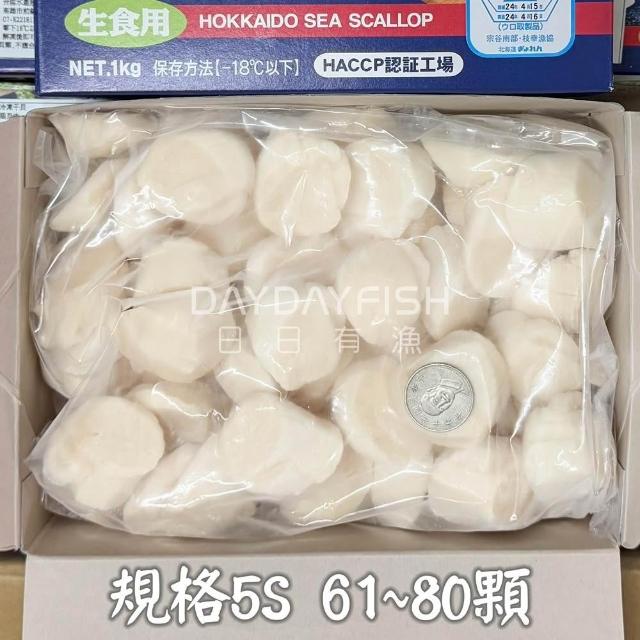 日日有漁5S尺寸-日本北海道生食級干貝(61~80顆/1kg原裝盒)