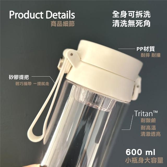 D circleArden雅頓彈蓋水瓶600ml (DO Tritan 透明隨行瓶 環保杯 咖啡冷泡杯 透明水瓶 冷泡茶水壺 運動水壺)