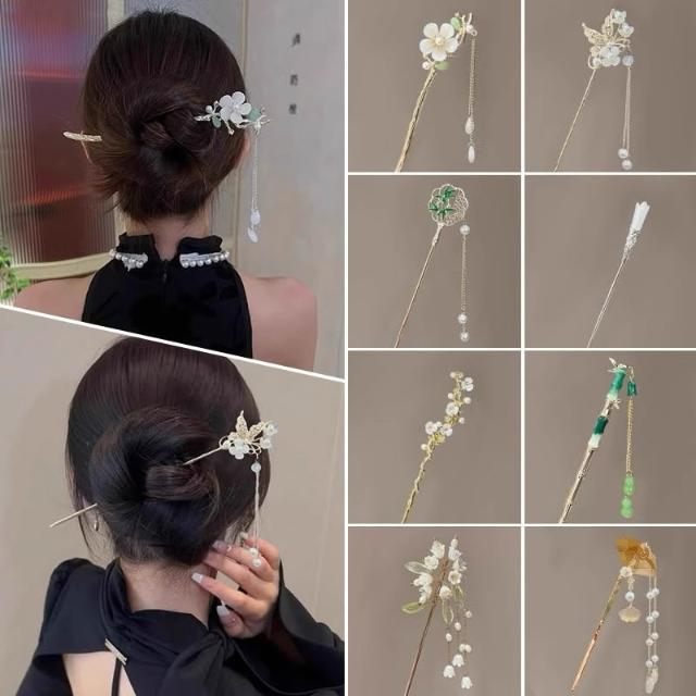 古風流蘇髮簪 古風髮簪 中式挽髮 髮釵 髮髻 髮叉 簪子 盤髮神器 快速盤髮 丸子頭 高級感 熊貓購物