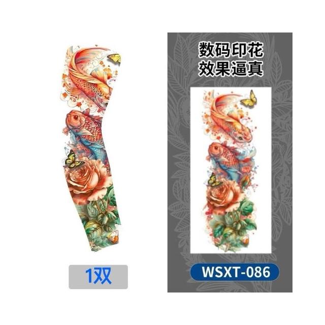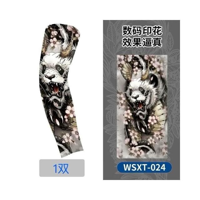 快速出貨 一雙紋身袖套 涼感袖套 冰絲袖套 花臂袖套 刺青袖套 防曬袖套 戶外運動 男女通用 紋身 袖套熊貓購物