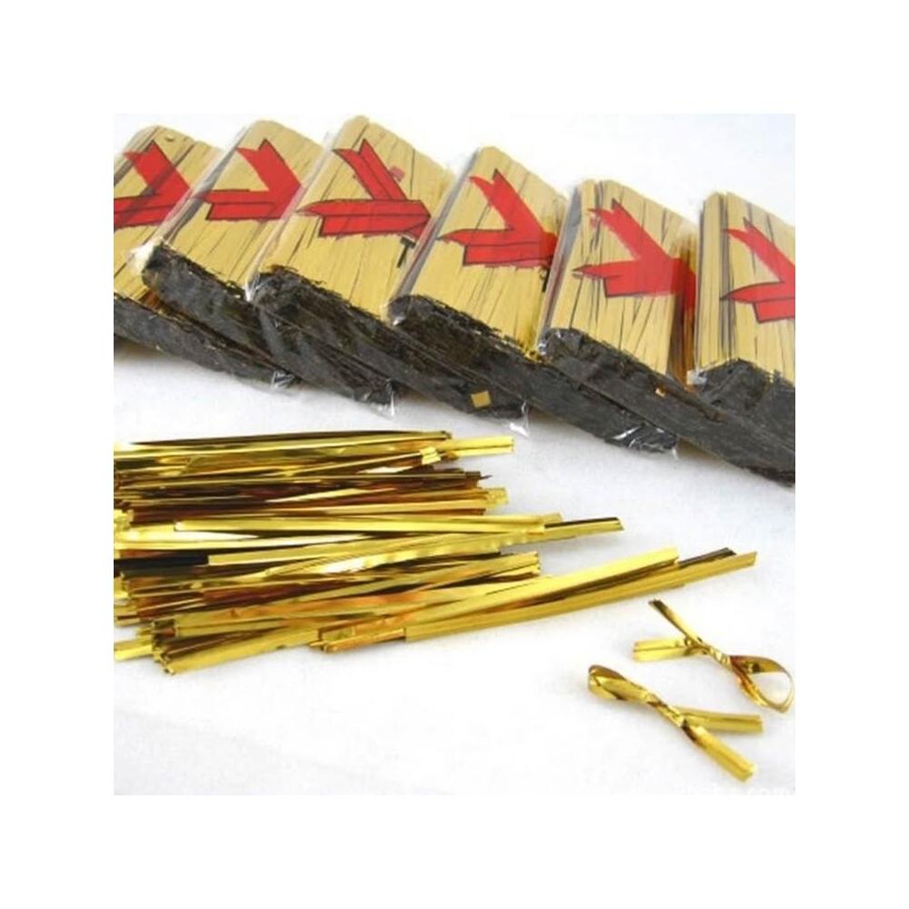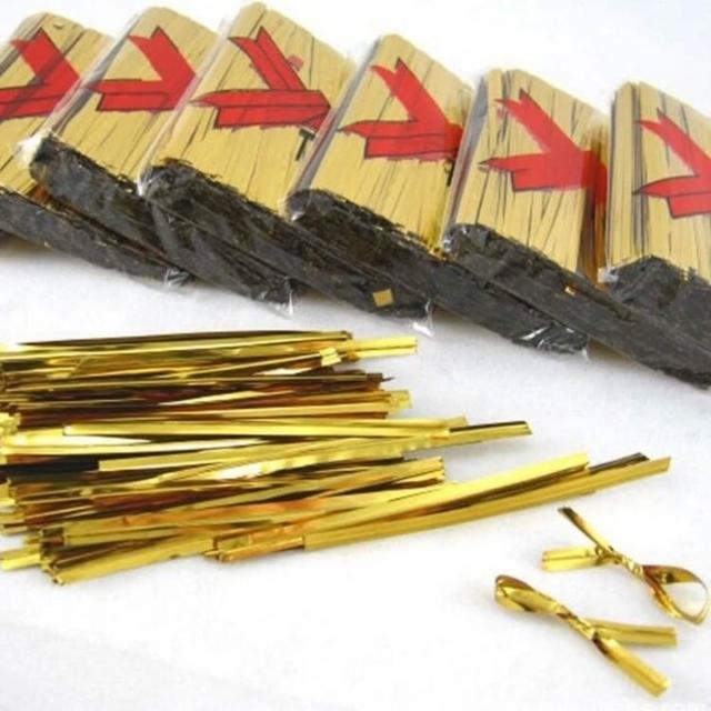 挑戰最低價 金色魔帶800入裝 台灣發票現貨 束口鐵絲 紮絲 封口鐵絲 束帶 綁帶 緞帶 喜糖 禮品包裝 食品包裝