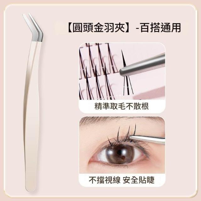 金羽夾假睫毛鑷子 圓頭7字型鑷子嫁接美妝工具 圓頭鑷子新手夾得緊不斷毛 專用夾假睫毛輔助器