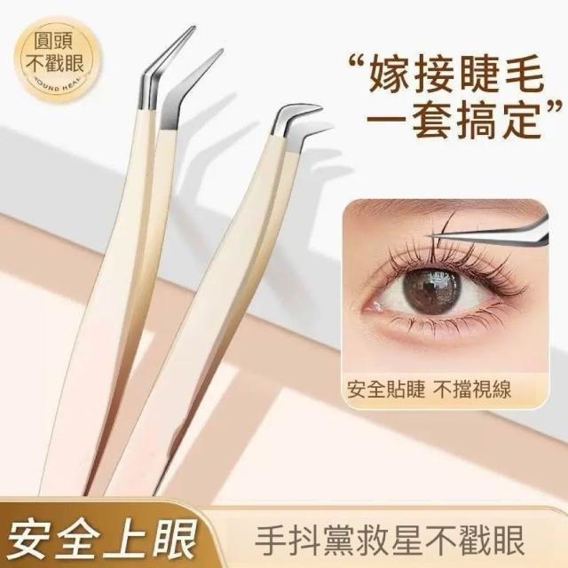 金羽夾假睫毛鑷子 圓頭7字型鑷子嫁接美妝工具 圓頭鑷子新手夾得緊不斷毛 專用夾假睫毛輔助器