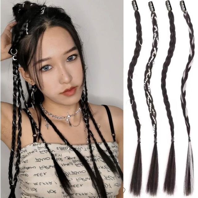 台灣發票 快速出貨 假髮雙馬尾 拳擊辮 Y2K辣妹 拳擊辮 挑染無痕麻花辮 髮片 假髮 髮圈 辮子 魚骨馬尾 舞蹈表演